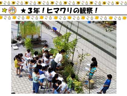 3年生の子どもたちが,中庭で観察していました!