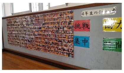 4年生のろう下には,みさきの家の写真がズラリと並んでいます!