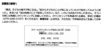 ★久我の杜小スクールカウンセラーだより!(2019/09/11)