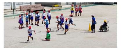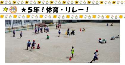 5年生が運動場で,リレーをしています!