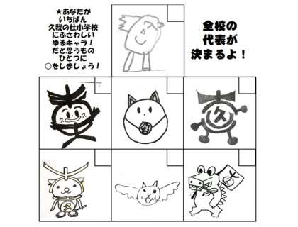 学校長が,1つのゆるキャラを選出し,久我の杜小学校のゆるキャラとします!
