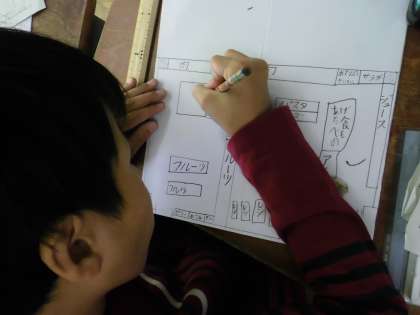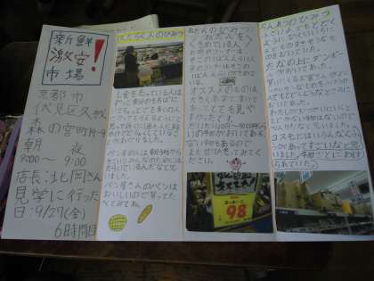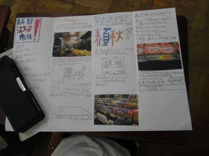 スーパーへの見学の後,それぞれが見つけてきたスーパーのひみつをリーフレットにまとめました。毎時間少しずつ秘密を書きまとめ,写真や絵などを使って分かりやすくリーフレットに仕上げました。