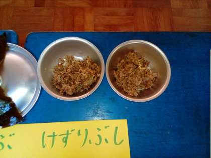 とうふの吉野汁に使うだしは,昆布とけずりぶしを使ってとりました。