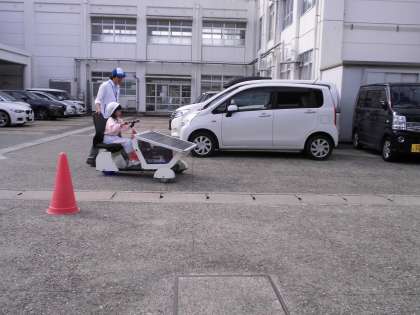 自転車をこいで発電をしたり,太陽電池で電気をためたり,電気で動く車を運転したりしました。