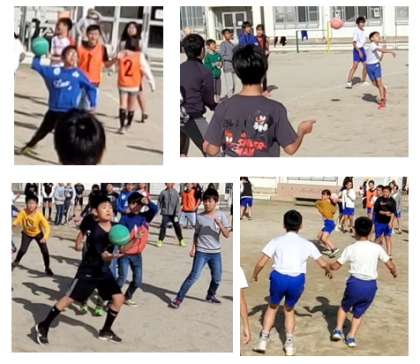 クラス全員,総力を結集し,勝利をめざして,ドッジボールを楽しんでいました!