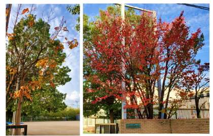 校内においては,サクラ,トチノキが紅葉し、落葉しています!