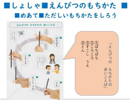 1年生のはやい段階で,適切な持ち方でたくさん,絵や文字を書く経験を積んでいきましょう!