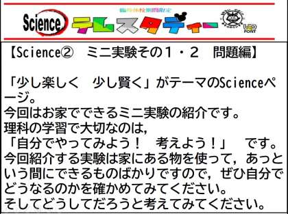 自分でやってみる!自分で考えてみる! これが理科の学習でとっても大切なんですよ。