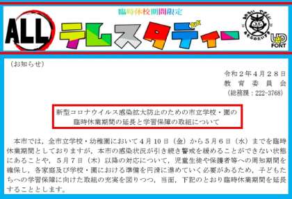 そして,今回の臨時休校の延長にともない,さらに
