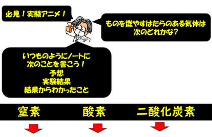 この3つの気体,全てに,ものを燃やすはたらきがあるでしょうか?
