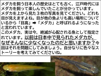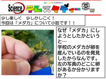 次回ももう少しだけメダカについて知ってもらいたいなあと思います。