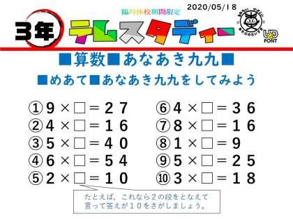 ■3年■算数■あなあき九九 (2020/05/18)