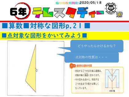 点対称の性質を使って点対称な図形を教科書p.21にかいてみよう。