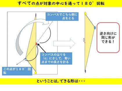 点対称は,対象の中心を中心にして180゜回転さすとぴったり重なる。