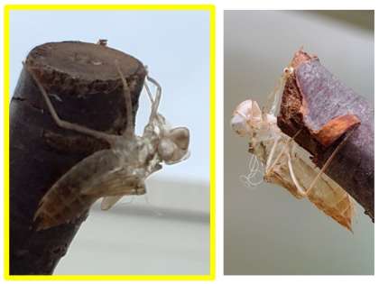 木の枝を経由して,結束パンドで羽化しているヤゴもいました!