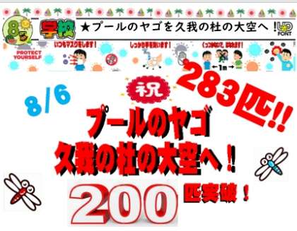 ★学校★プールのヤゴを久我の杜の大空へ!定点観測継続中!(2020/08/06)