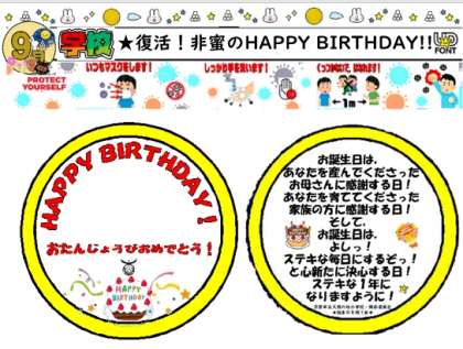 新型コロナは,いろんなものをうばっていきました!全校の子どもたちの誕生日を祝う