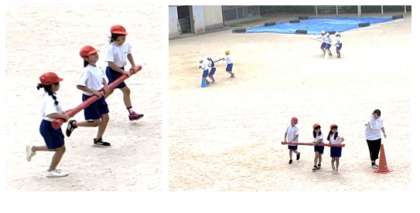 1本の竹の棒を数人で持って,協力して走り,その速さを競うゲームです!