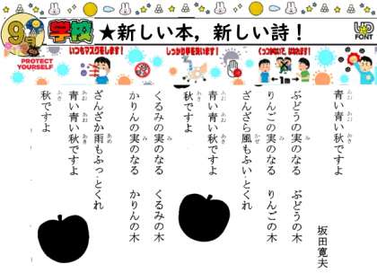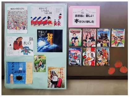 図書支援員さんが,図書室に新しくはいった本と新しい詩の掲示をしました!