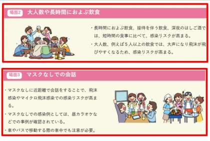 これまでの感染拡大の経験から,感染リスクが高い行動や場面が明らかになってきました。