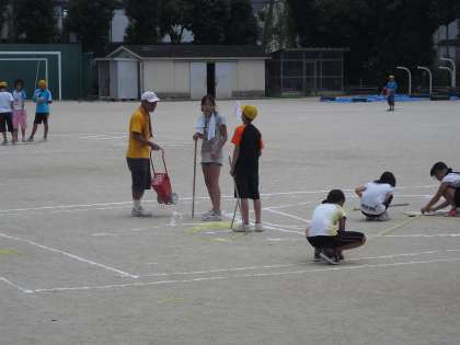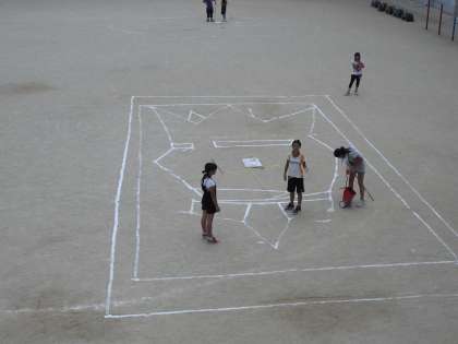 みんなで協力し運動場に拡大図を描きながら、子ども達は「拡大図・縮小図」の性質や作図の方法を確認できたことでしょう。
