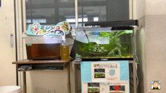 ミジンコパラダイス予定の水槽には,メダカを数匹いれ,飼育しています!