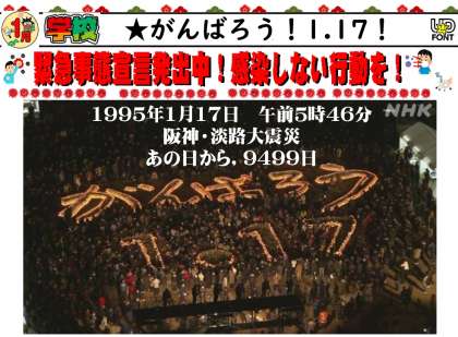 震災でお亡くなりになられた方を追悼するとともに,震災で培われた「きずな・支えあう心」「やさしさ・思いやり」の大切さを次世代へ語り継いでいくため,新型コロナ禍の中の昨日,2021年1月17日