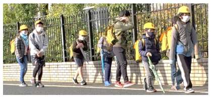 どの登校班も新班長が先頭に立ち,ちょっぴり緊張した様子!