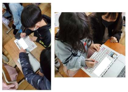 ◆1年生が簡単に覚えられるように,言葉を選んで話そうという工夫をしました。1年生はローマ字が分からないから,文字の入力を教えるのをかんばりました。