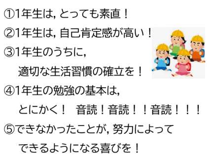 4)1年生の勉強の基本は,とにかく,音読!