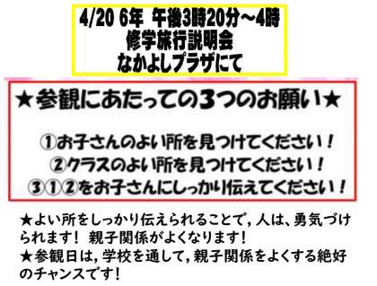 6年生の保護者の方は,修学旅行説明会にも,お越し下さい!