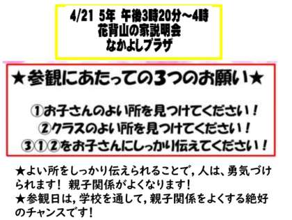 5年生の保護者の方は,花背山の家宿泊学習説明会にも,お越し下さい!