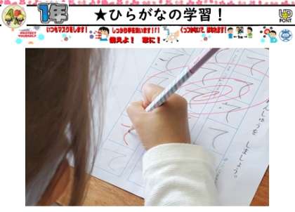 担任の先生が書いた赤い文字の上をていねいになぞっていました!