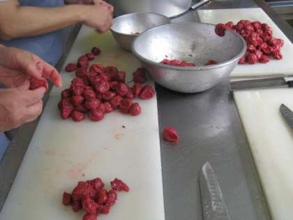 しゃしんは「うめぼし」のたねをとっているようすです。