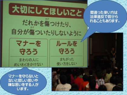 携帯電話のトラブルに巻き込まれないために、携帯電話の使い方のルールとマナーを学びました。