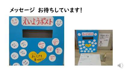 また,毎日の給食ビデオでは,5月10日月曜日…♪とアナウンスがあります。みんなの声を毎日の給食ビデオに反映させていきたいと思います。おいしさを見つけた声などお待ちしています!