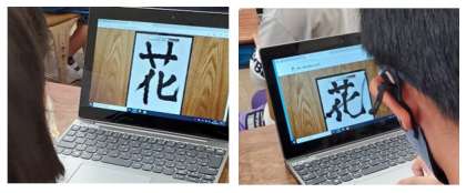 コンピューターで毛筆習字をし,花と書きました!