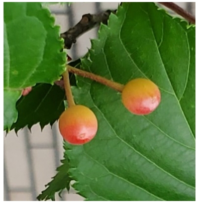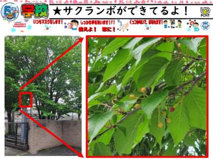 学校のサクラの木にサクランボがなっています!