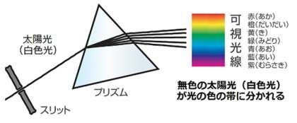 ニュートンは,1666年に行ったプリズムによる太陽光の分散の実験の結果から,赤色から紫色に連続的に変化する光の色の帯のことをスペクトルと名付けた!