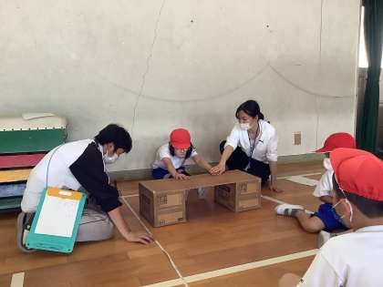 体育科の学習で,体力テストを行いました。運動場では50m走とソフトボール投げ,体育館では反復横跳びや長座体前屈,20mシャトルランなどをしました。高学年の友だちが見本を見せてくれ,初めて経験する1年生も,高学年の真似をして一生懸命に取り組んでいました。「疲れたあ〜」「2回目は(記録が)伸びた!」「〇〇さん,すごい!」など,いろいろな声が上がっていました。