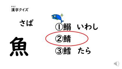 漢字クイズ さばを漢字で書くと,魚辺になんと書くのでしょう?