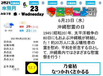 沖縄県は旧日本軍の組織的な戦闘が終わったとされる6月23日を「慰霊の日」としています!