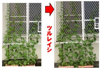 保健室フェンス・ツルレイシは,2階のフェンスへ達しそうです!