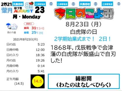 2学期始業式まで,あと! 2日!