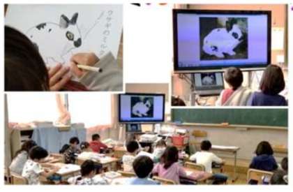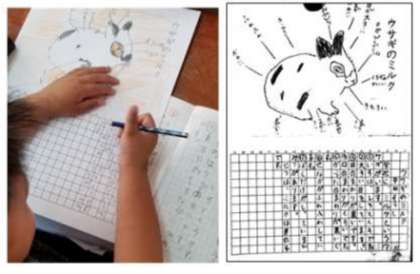 まず,大型テレビに映し出されたミルクというウサギの絵を細部にわたってかきます。