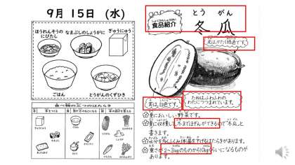 給食ビデオで紹介しました。種がふわふわのわたにつつまれていて,皮は緑色でした。