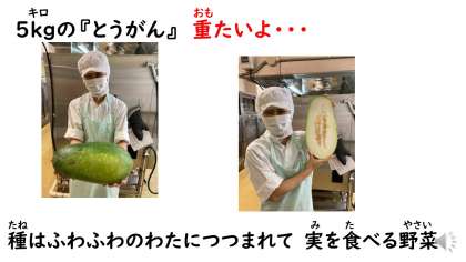 今日,久我の杜小学校に届いた『とうがん』はなんと5kgの大きな物でした。