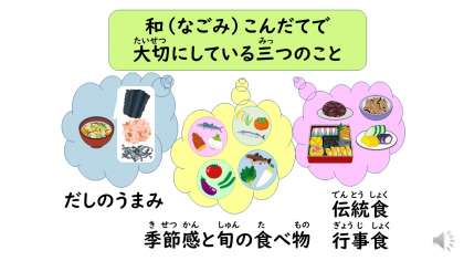 今年度は,和(なごみ)献立ではない日に,おはぎ・しば漬がつきました。子どもたちの中に,漬物や和菓子がついているから和(なごみ)献立や!と認識していることが多く,改めて和(なごみ)献立が大切にしている3つのことを給食ビデオで紹介しました。