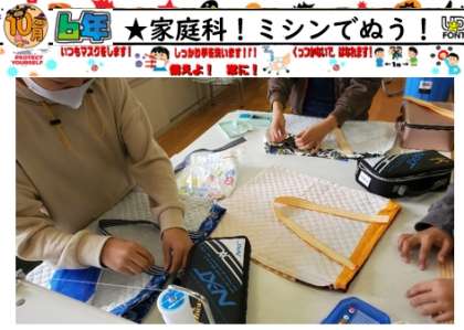 6年生が,ミシンを使って,手さげかばんを作っています!
