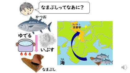 なま節をさとう・みりん・料理酒・濃口醤油・薄口醤油でじっくり煮含めます。なま節のうま味が出た煮汁で厚揚げ・にんじん・たけのこをにていきました。やさしい野菜の甘味も味わえました。